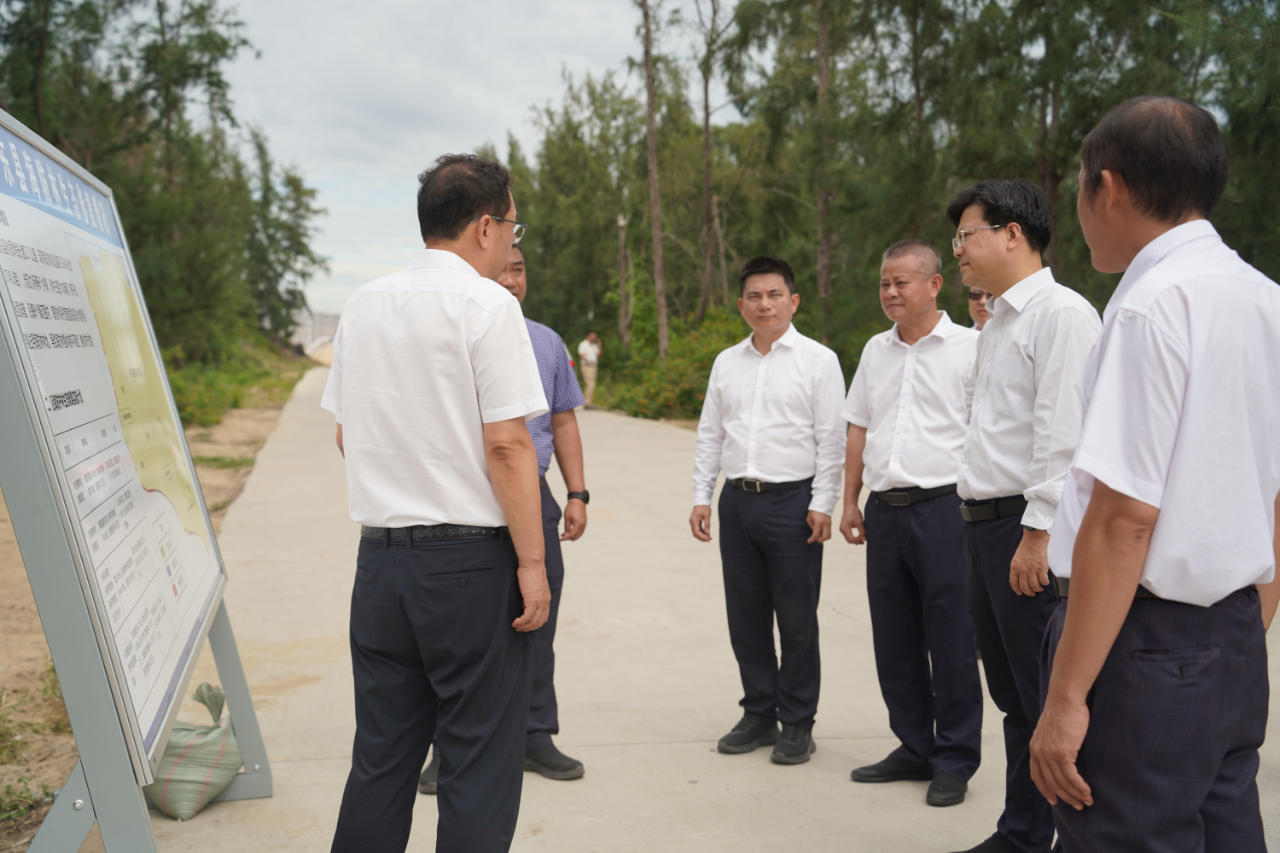 (10月28日,在乐东县九所镇中灶湾砂质岸线调研砂质岸线整治等情况。)