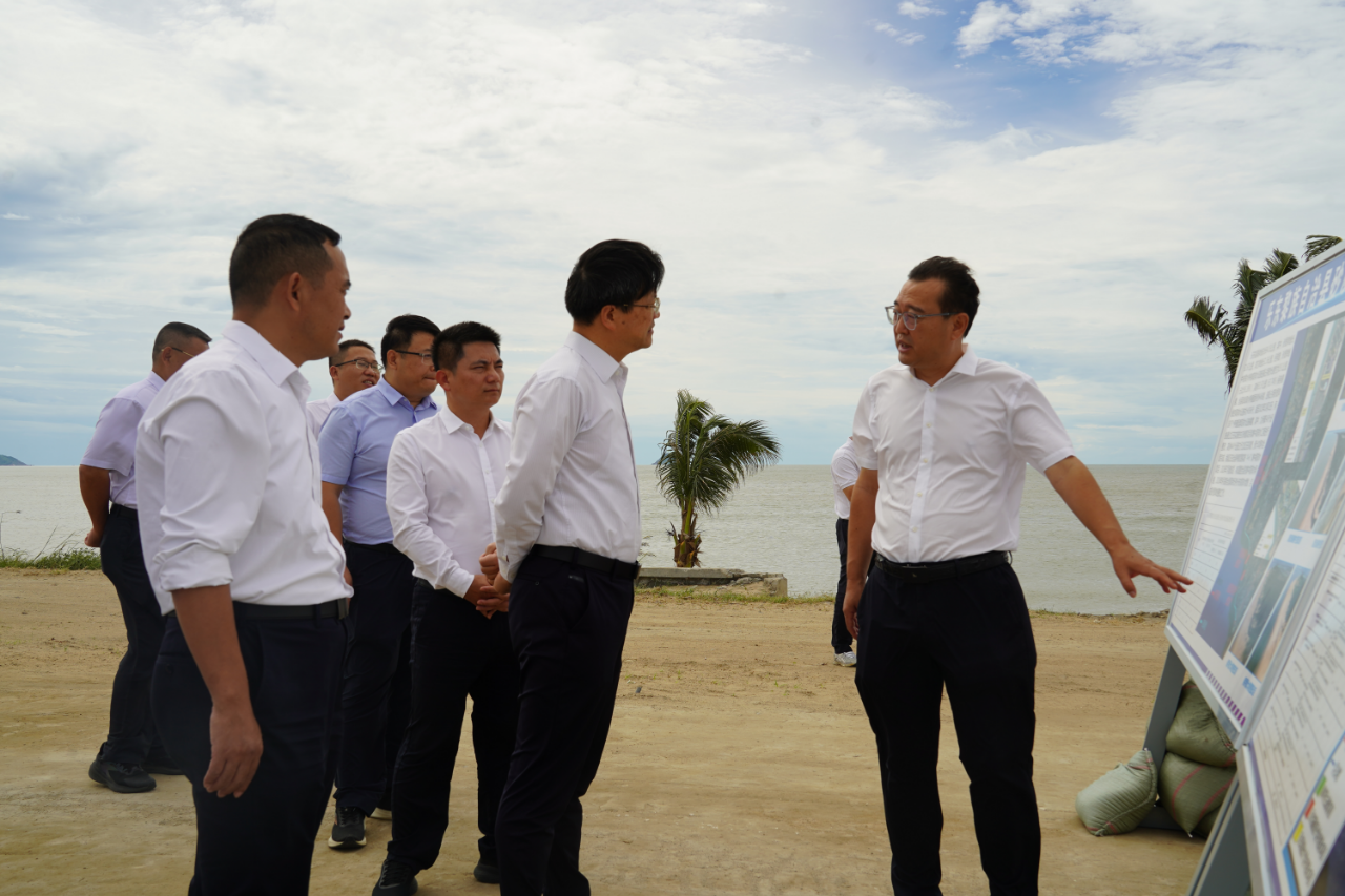 (10月28日,在乐东县九所镇中灶湾砂质岸线调研砂质岸线整治等情况。)