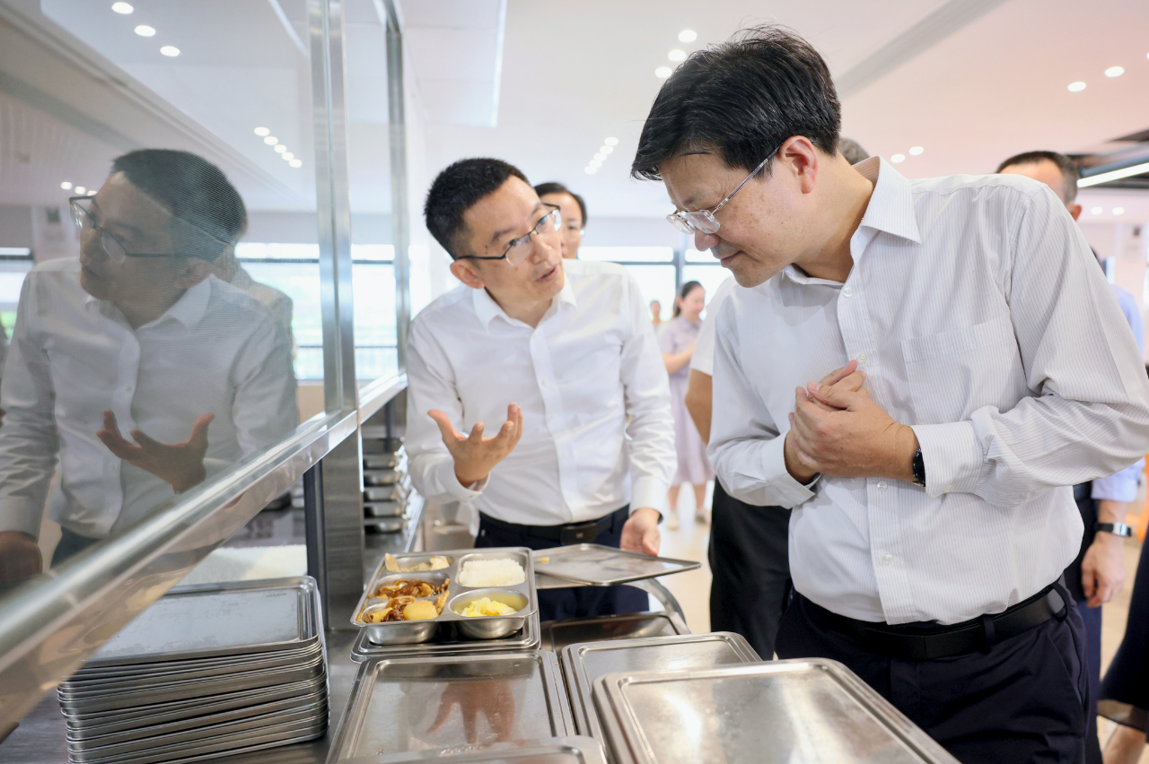 (10月29日,在三亚崖州湾科技城上海世外教育附属外国语学校,督导检查“校园餐”专项整治情况。)