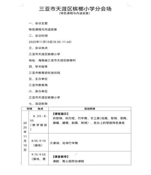 为深化课程改革、提升课程品质、发挥课程育人功能,落实立德树人根本任务,培育学生发展核心素养,第七届全国中小学(幼儿园)品质课程学术交流会将于2025年11月8日至11日在“浪漫天涯美丽三亚”隆重举行。三亚市天涯区槟榔小学荣幸地成为本次盛会的第七分会场。本次会议以“活跃学习生态的课程变革”为主题,聚焦课程品质提升与学生核心素养培育,汇聚全国教育专家、学者与一线教师,共绘基础教育高质量发展的新蓝图。
