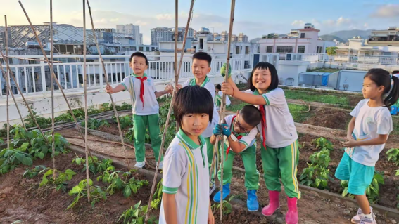 实践工坊:从“校园小农夫”到“社区小主人”,课程链接真实生活场景。孩子们在校园菜园种植本土作物,用收获的蔬菜制作美食;走进社区养老院,用亲手绘制的白鹭画作装点墙面,在实践中理解“责任”与“奉献”的分量。