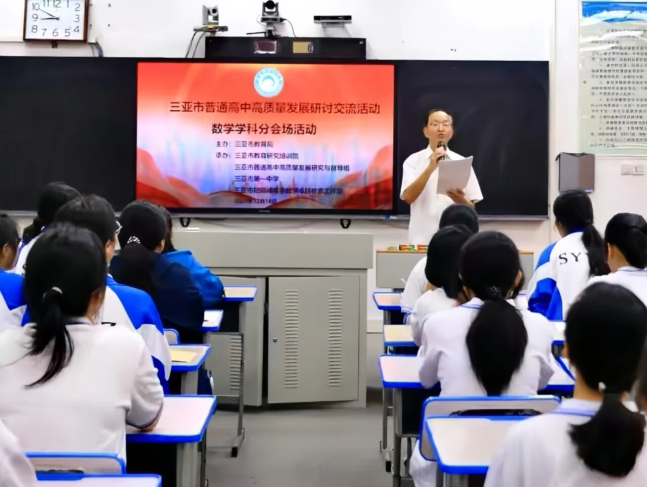 为深入研判高考改革新趋势,全面提升普通高中教师教学能力与备考效率,推进三亚市普通高中高质量发展,12月14日至26日,市教育局组织开展普通高中高质量发展研讨交流活动。本次活动以“应对新高考,赋能新课堂,探索提质增效新路径”为主题,采用主旨报告领航、课例观摩示范、学科研讨攻坚相结合的实施方式,着力夯实教学基础、提升育人质效,为三亚市普通高中教育高质量发展注入强劲动力。