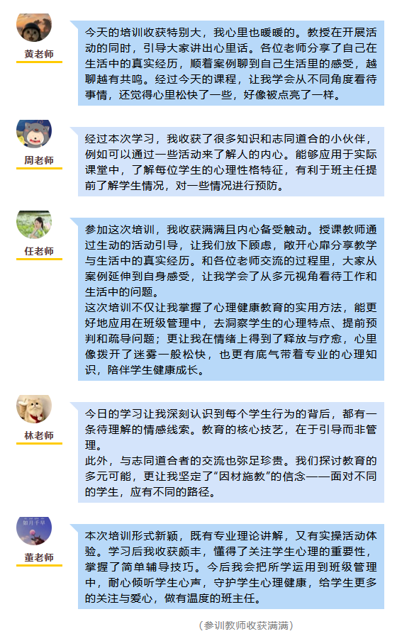 此次培训既是一次精准高效的专业“充电赋能”,更是一场触及内核的教育思想洗礼,有效夯实了全市中小学班主任心理育人工作的坚实基础。