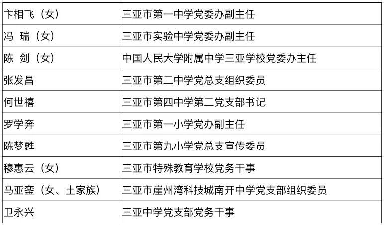 三亚市教育局优秀共产党员、优秀党务工作者和先进基层党组织表彰名单