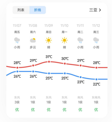 会议期间,三亚天气以多云、晴天为主,偶有小雨,气温舒适但需注意温差: