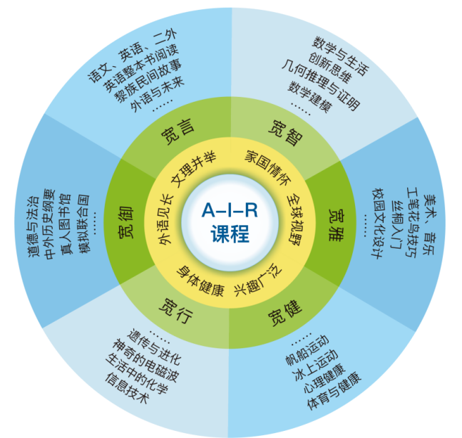 在南海之滨、自贸港腹地,上外三亚附中自2020年建校以来,始终秉持“宽教育”哲学,以“让每一个孩子在最宽广的领域恣意奔跑”为课程理念,构建起独具特色的“A-I-R”课程体系,致力于培养“家国情怀,全球视野;外语见长,文理并举;身心健康,兴趣广泛”的立身世界的中国人。“宽教育”是“海派精神”与“琼州风骨”的融合,是全面发展的教育、以人为本的教育、面向世界的教育、着眼未来的教育。“A-I-R”课程模式以“行动-探究-反思”为逻辑主线,强调在行动中探索、在探索中反思、在反思中升华。AIR亦如空气,寓意教育无处不在、潜移默化。