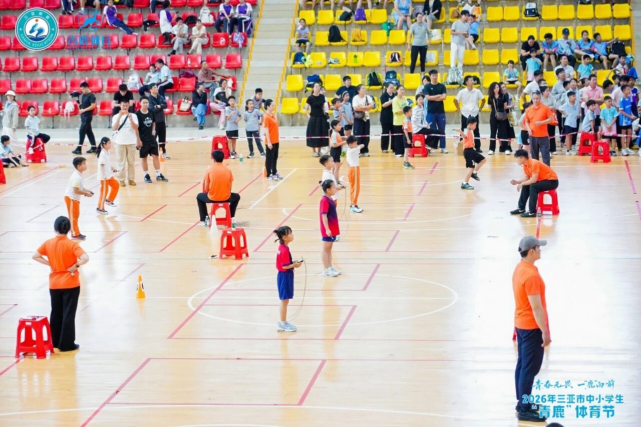 “加油!加油!”三亚市第一中学体育馆内人声鼎沸、呐喊声此起彼伏。4月7日至8日,作为首届三亚市中小学生“青鹿”体育节的揭幕战,2026年三亚市第五届中小学生跳绳比赛火热开赛。全市学子以绳为媒、以赛会友,在翻飞的绳影中展开激烈角逐,尽展三亚少年昂扬向上的青春风采。