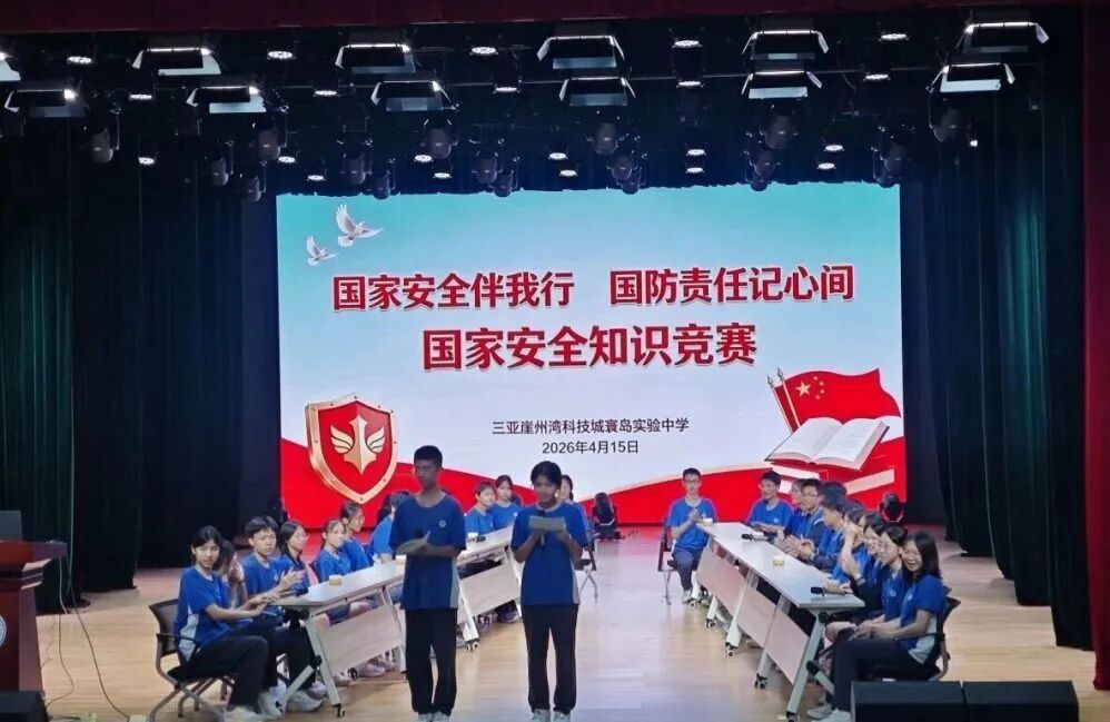 在丰富教育形式上,三亚崖州湾科技城寰岛实验中学创新发力,以“国家安全伴我行,国防责任记心间”为主题,举办国家安全知识竞赛。竞赛面向七、八年级学生,围绕《国家安全法》、总体国家安全观等核心内容设题,设置必答题、抢答题、台下互动等环节,以赛促学,引导学生深化安全认知,以青春之力护航“十五五”新征程。