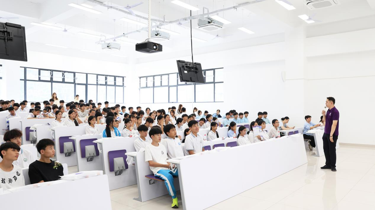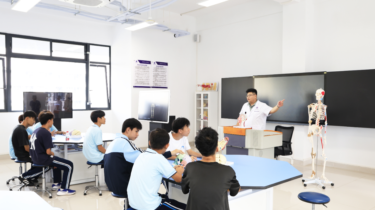 在职业生涯规划专题讲座上,讲师聚焦“升学路径认知、海南职教优势与中职阶段发展机遇”等主题,为同学们带来清晰的政策解读与成长建议,引导大家提早关注个人生涯规划,拓展对多元化成才路径的理解。随后,同学们步入大健康职业体验基地的医学基础知识课堂,基地教师借助高仿真人体模型、动态医学影像及贴近生活的案例,深入浅出地讲解了人体构造、循环系统运作原理及急救“黄金时间”等核心知识,将抽象概念转化为直观体验。同学们认真聆听、踊跃提问,现场学习氛围浓厚。