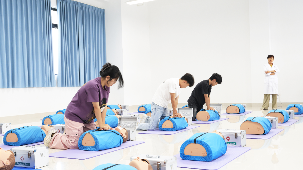 “01、02、03……30!”核心实践环节中,基地教师详细演示心肺复苏操作流程,同学们分组在模拟人身上动手实践,认真练习按压、人工呼吸等关键步骤。通过亲身操作,同学们不仅掌握了心肺复苏基本技能,更深刻体会到急救要义,增强了自我保护与应急处置能力。