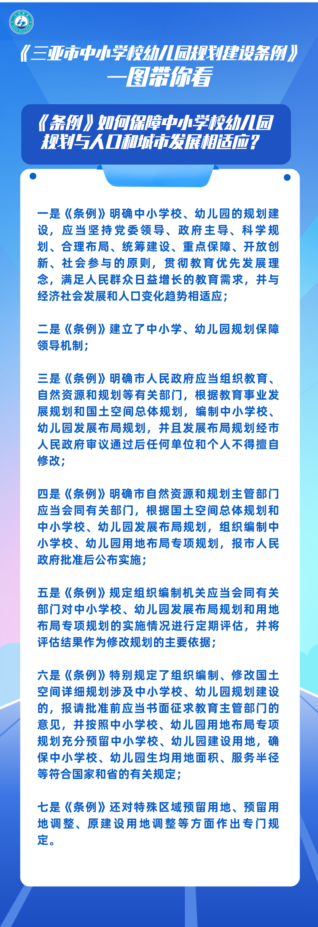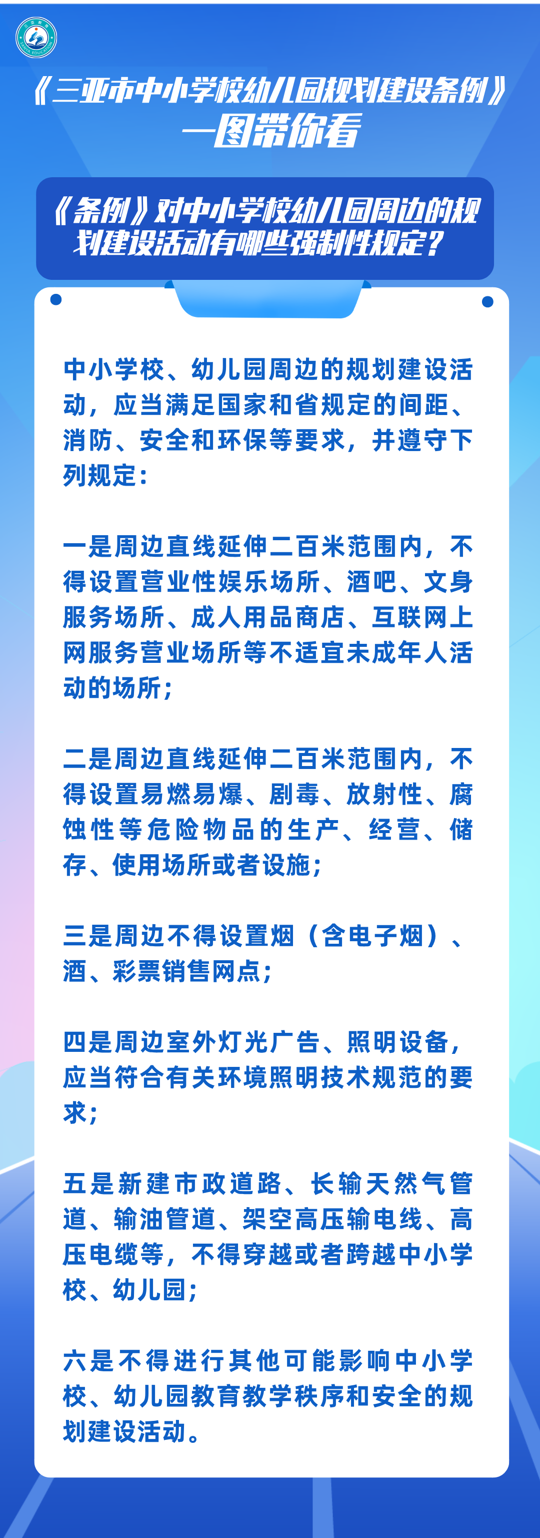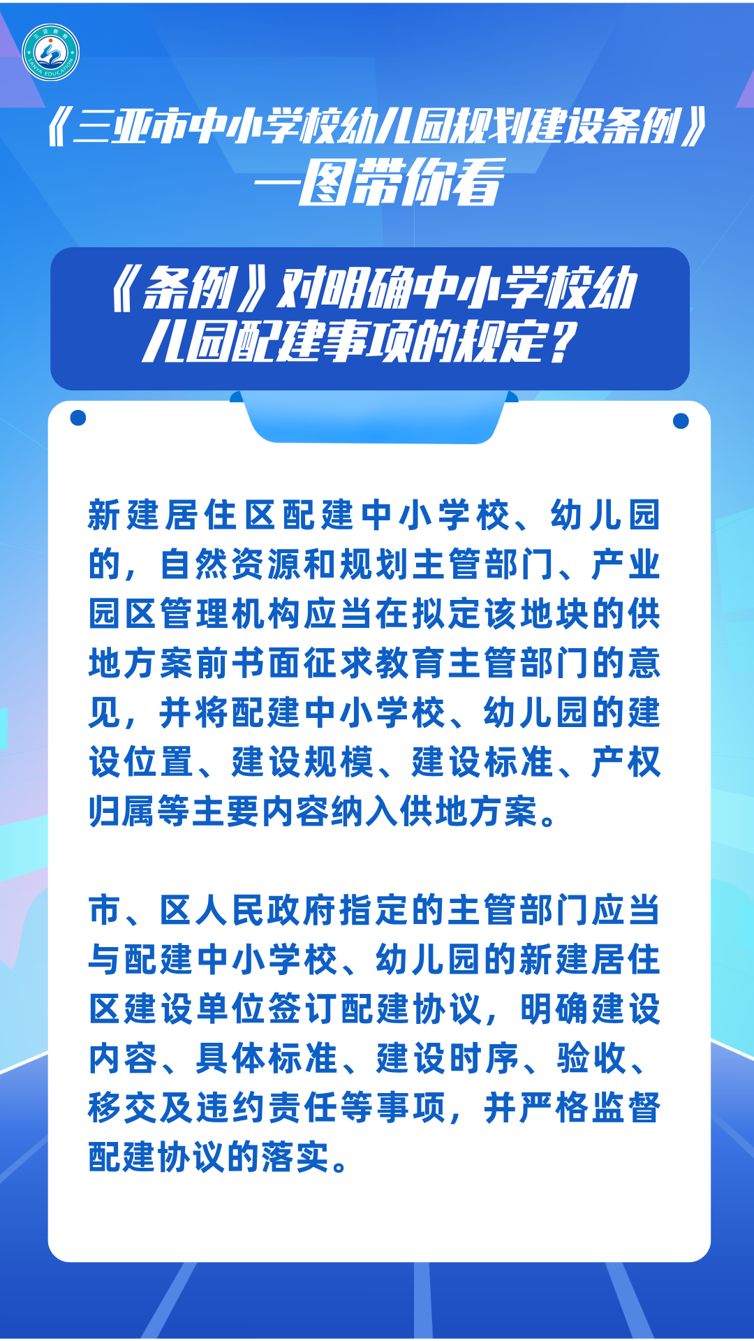 《三亚市中小学校幼儿园规划建设条例》将于2025年6月1日起施行,条例详尽规定了我市中小学校幼儿园规划建设的各环节事项——